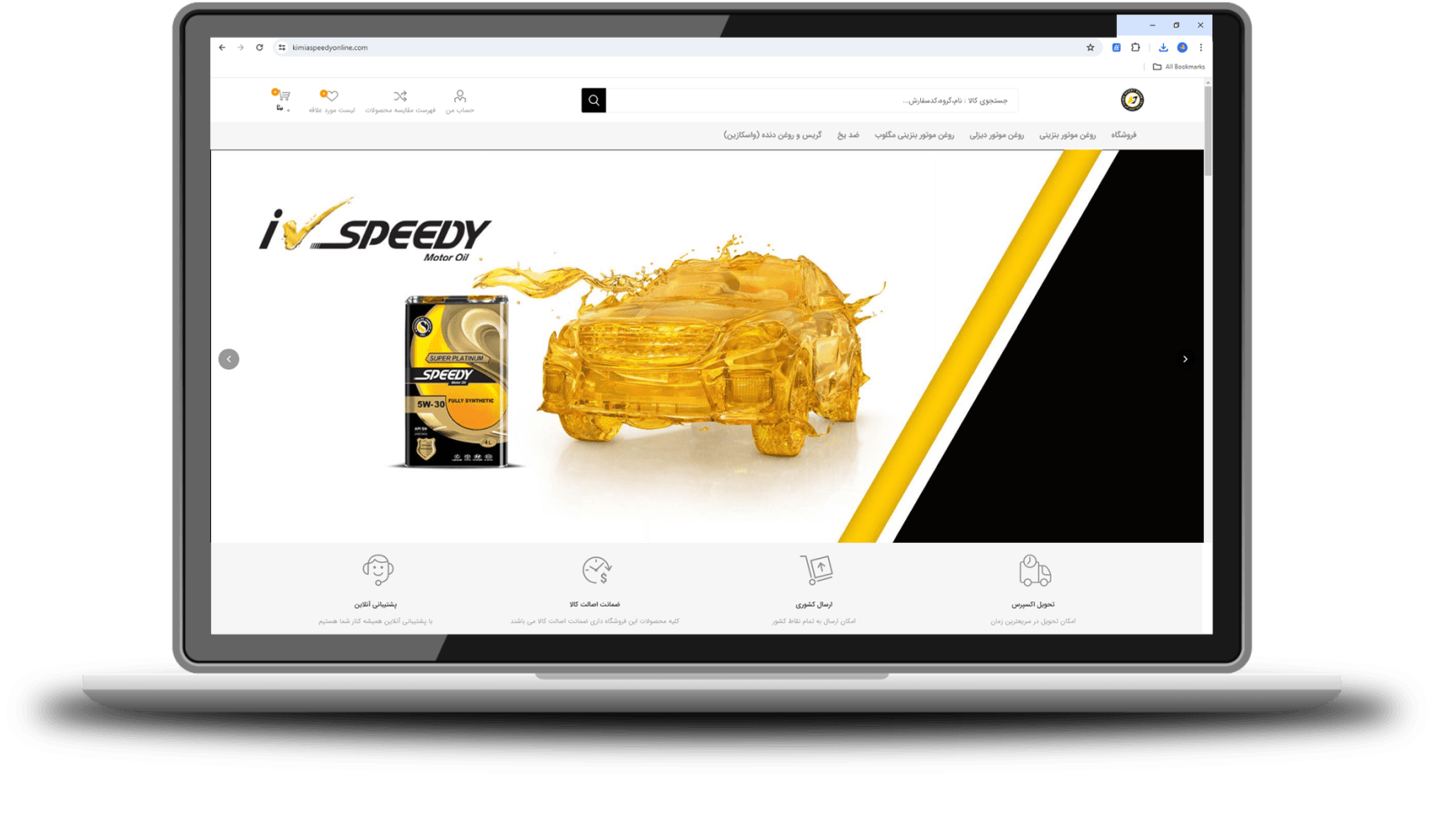 این سامانه با بهرهگیری از زیرساخت فروش اینترنتی شرکت مگا راهاندازی و پشتیبانی شد، و روغن موتورهای شرکت کیمیا اسپیدی قشم با برند اسپیدی از طریق آن به فروش رسید. در این سامانه امکان معرفی، مقایسه و خرید محصولات متنوع شرکای کیمیا اسپیدی قشم نیز فراهم شده بود.